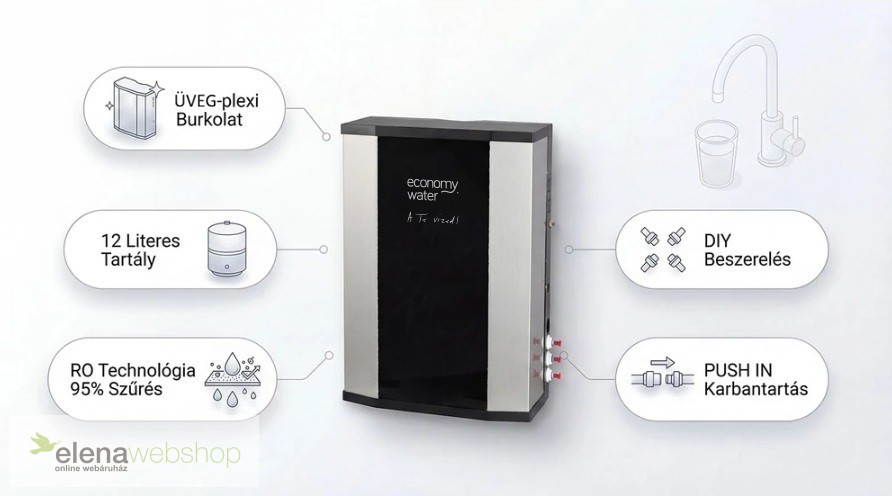 Válassza a megbízhatóságot és az eleganciát! Az RO-Economy WP víztisztítóval Ön is búcsút inthet a nehéz vizesballonoknak és élvezheti a prémium forrásvíz minőségét otthonában.