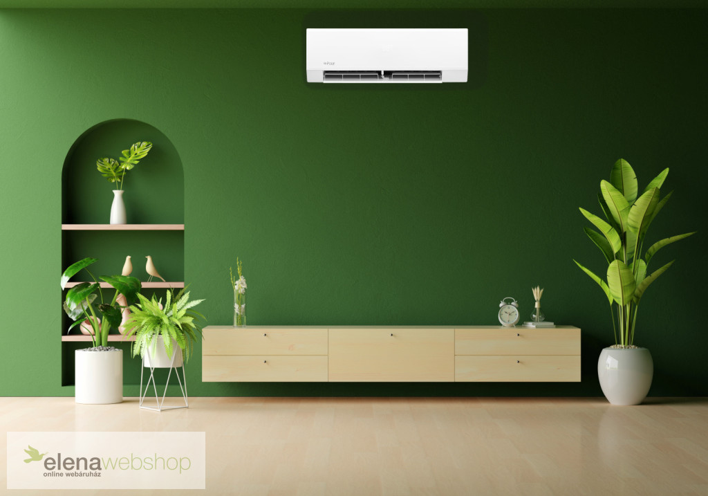 Magas energiahatékonyságú, R32, Inverteres splitklíma berendezés, hőszivattyús kivitel, infra szabályzóval, beépített wifi, alaplemez fűtéssel.