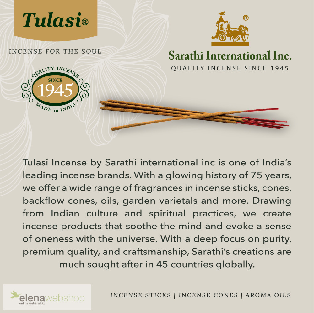 Tulasi Classic Incense Cones - Set of 12 with the following scents: Cinnamon, Jasmine, Lavender, Musk, Patchouli, Red Rose, Sandalwood, Frankincense & Myrrh, Vanilla, Queen of the Night, Citronella, White Sage.